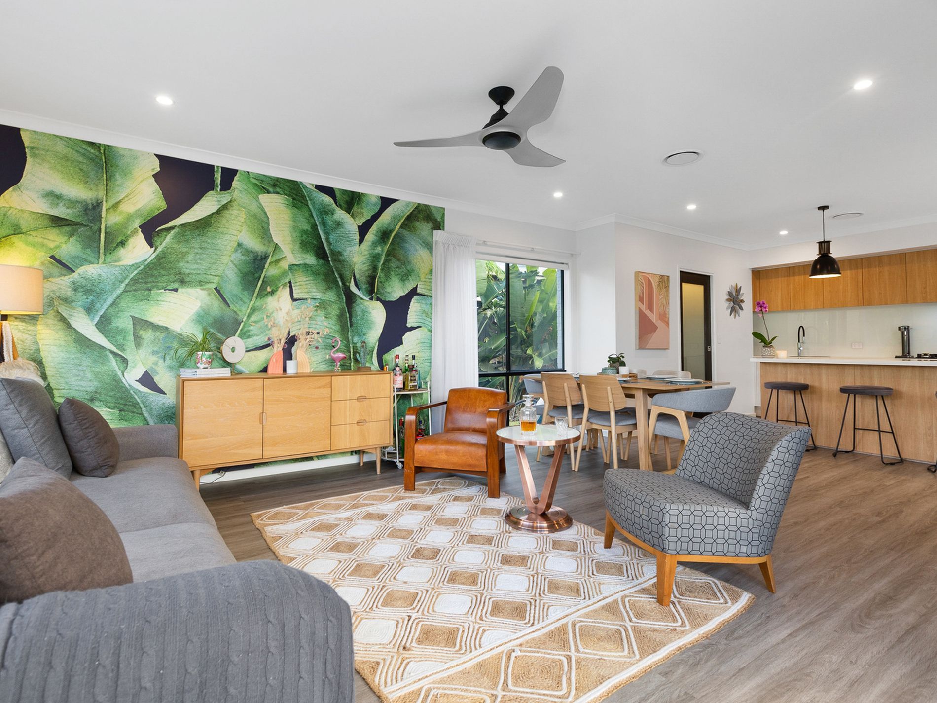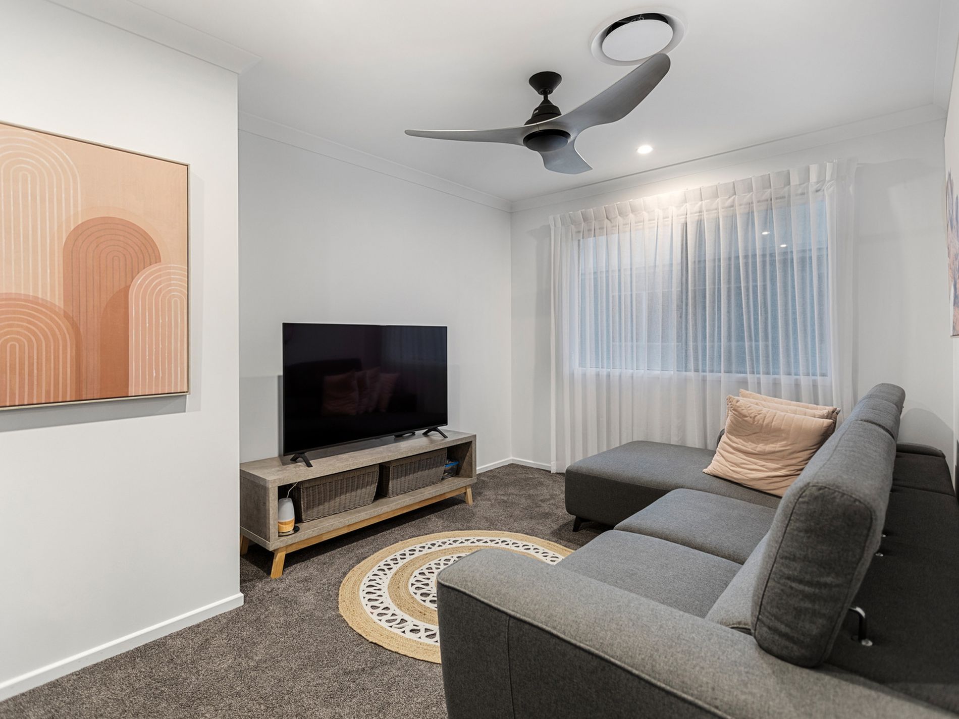 Zoned ducted air conditioning and ceiling fans throughout
